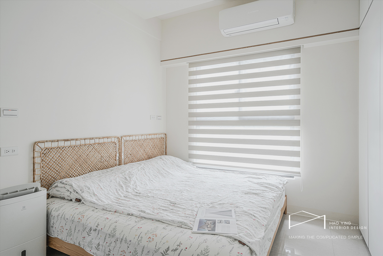 斑馬簾過濾日光,亮白地坪映出窗紗光影,空氣感被自然放大