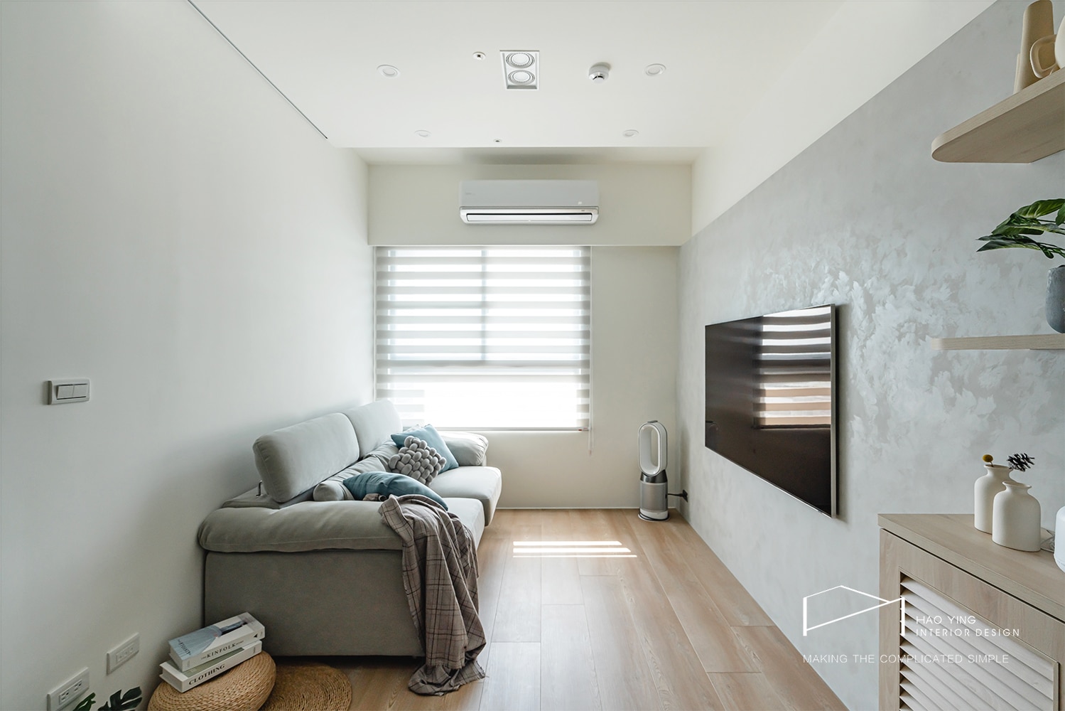 電視牆留白簡潔,展現純粹而俐落的氛圍