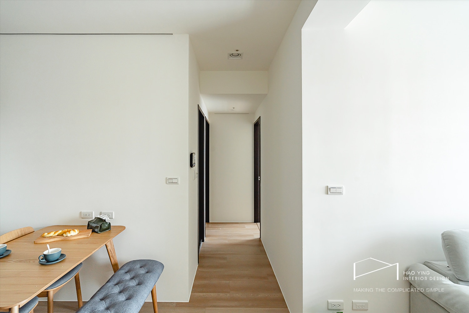 採光灑落間,線條簡潔的牆面更顯柔和而沉穩