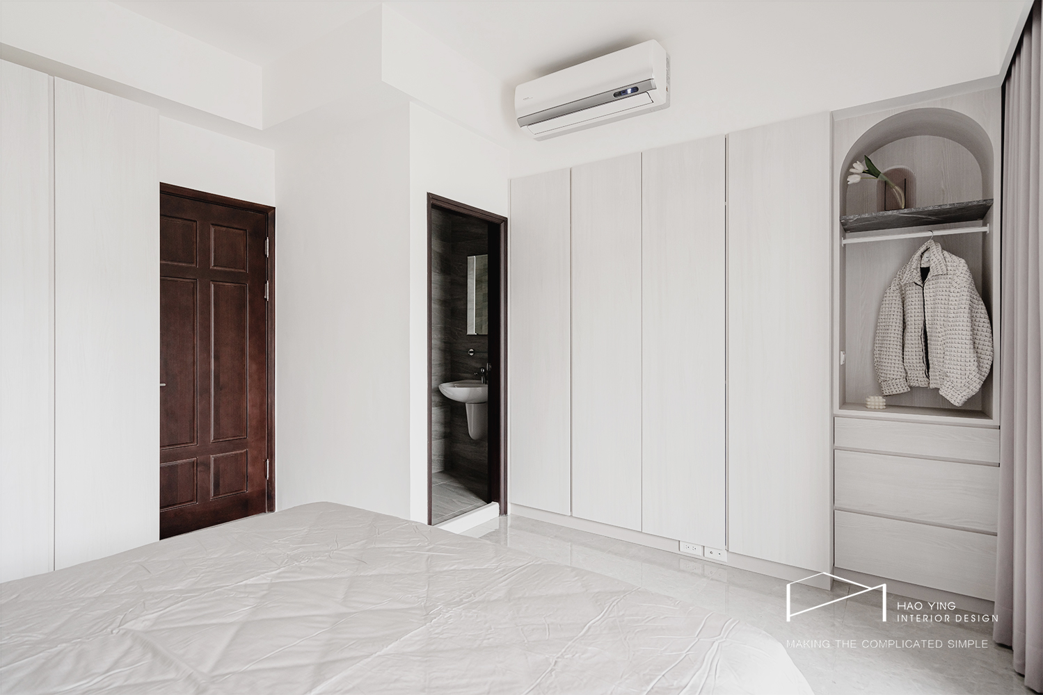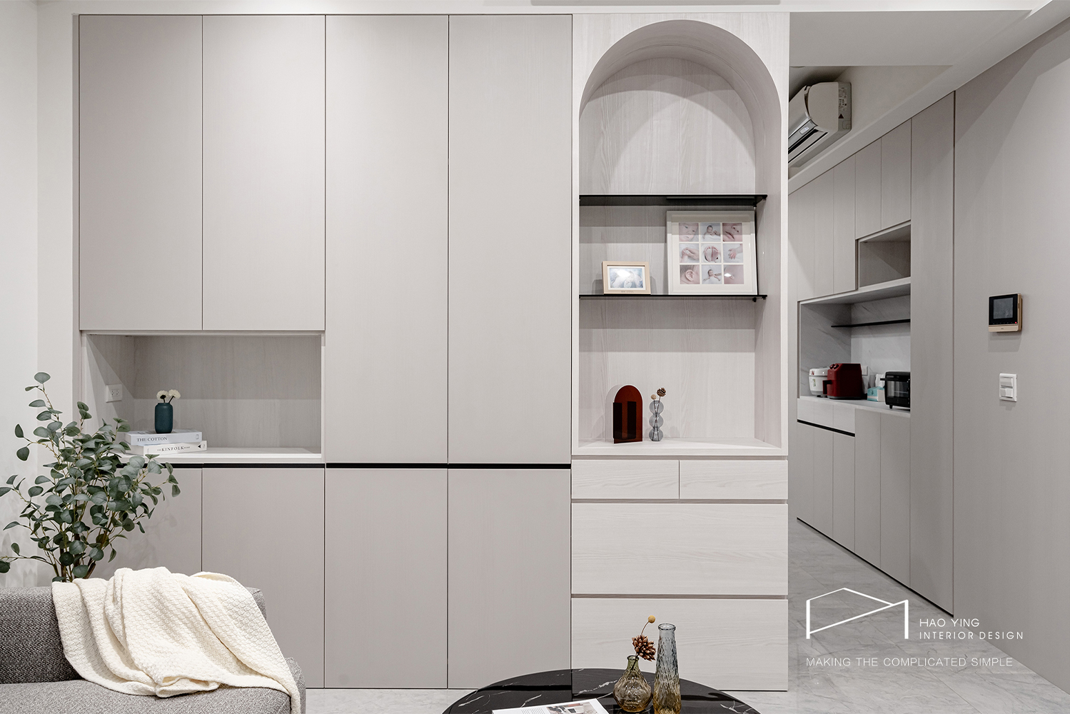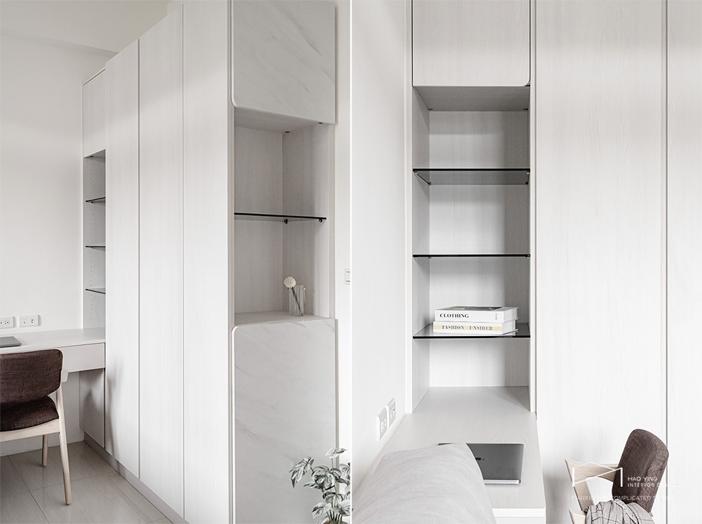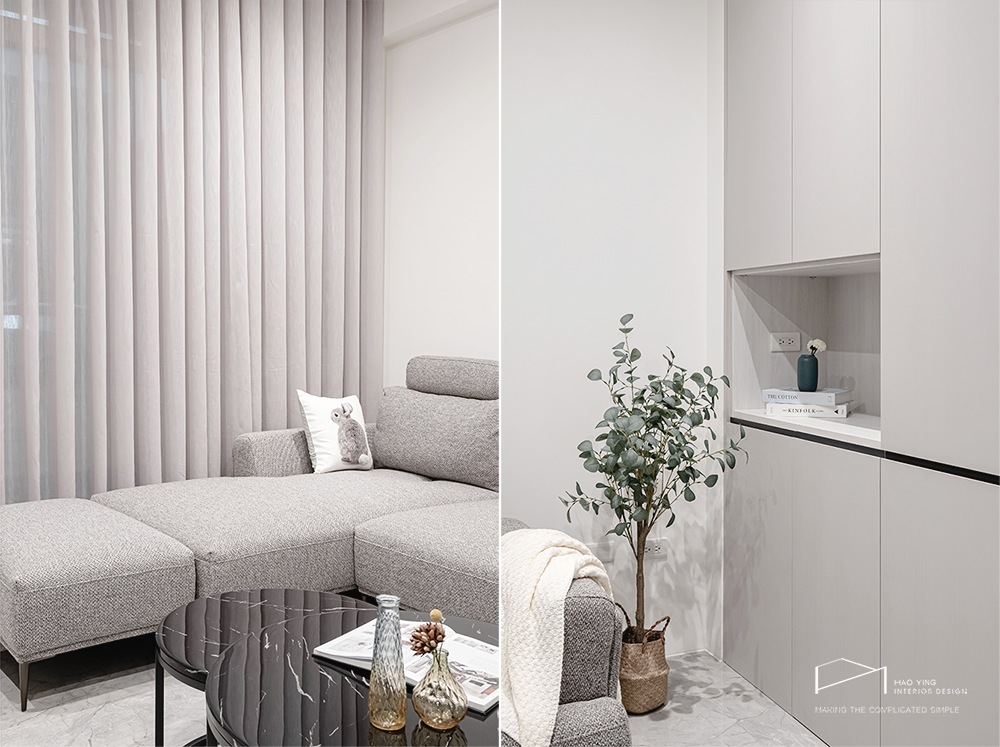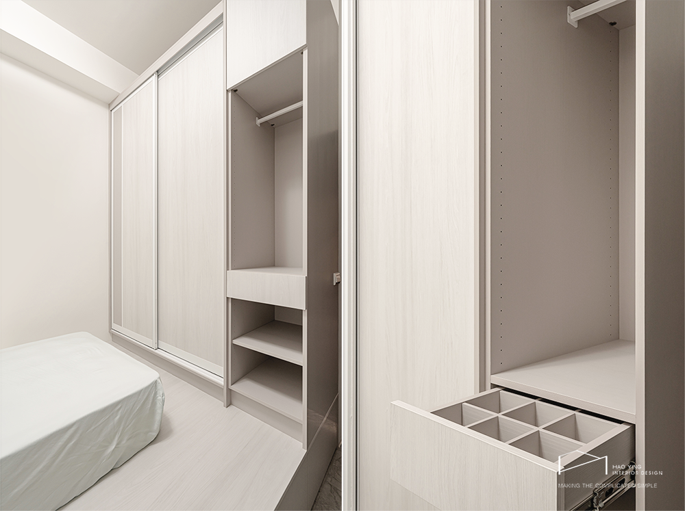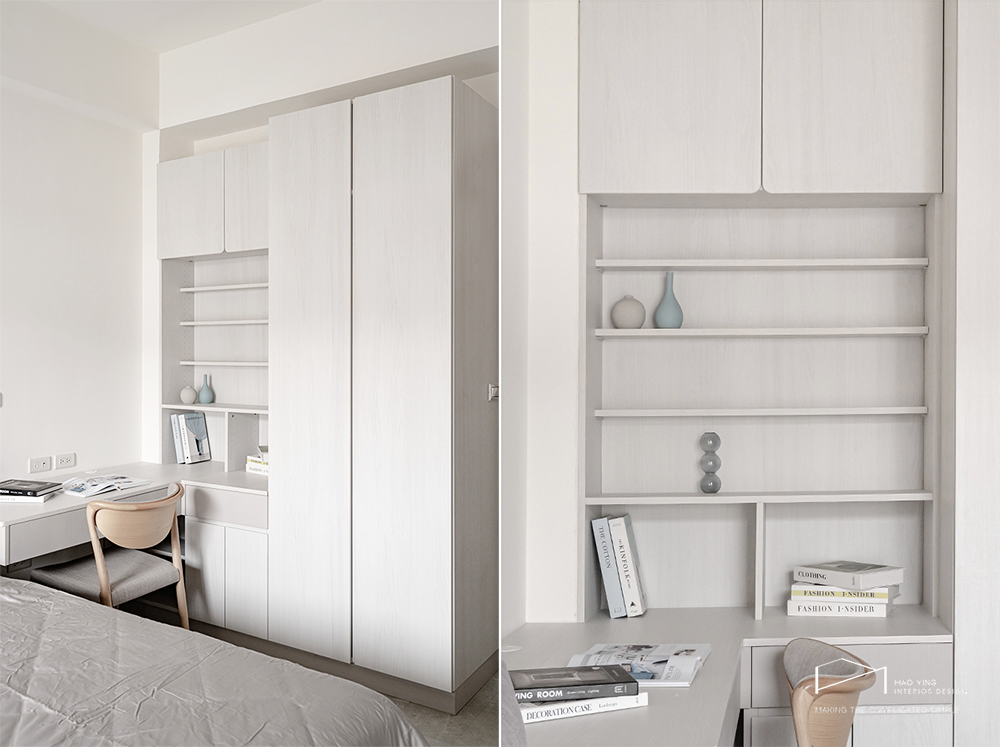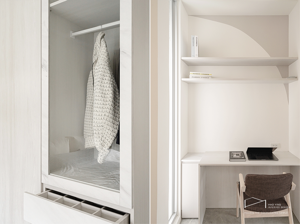 白色大面櫃體延展視覺,整齊有序卻不失柔和