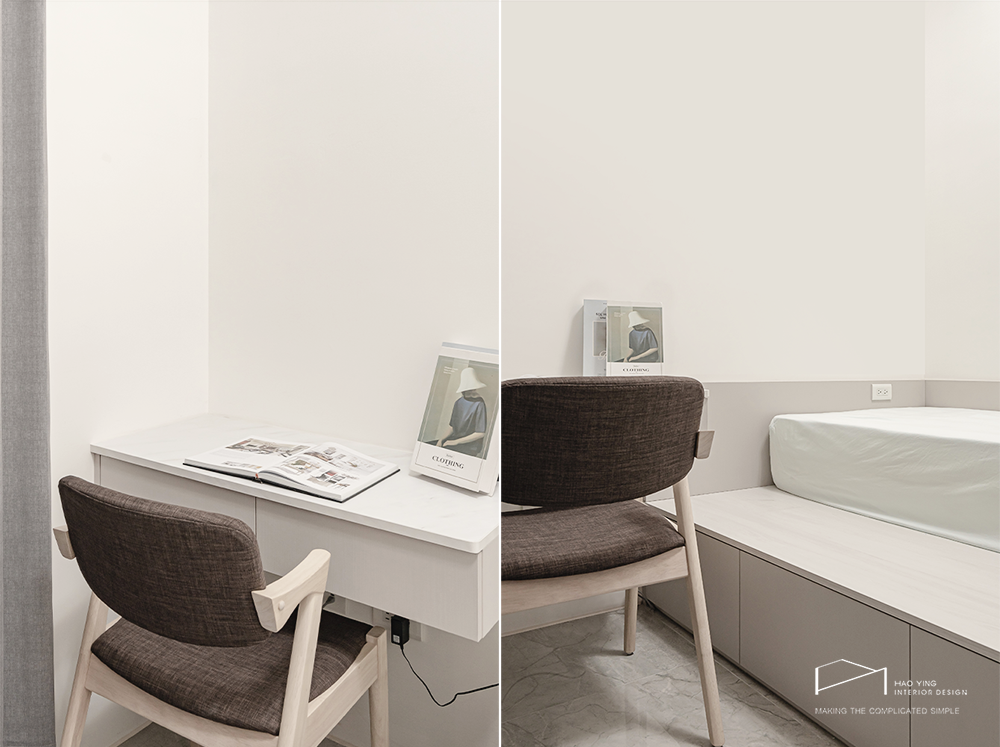 書桌與床鋪緊鄰配置,方便日常使用也凝聚親切感