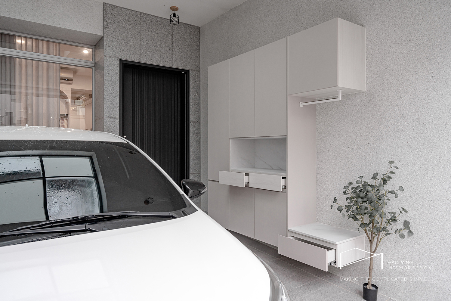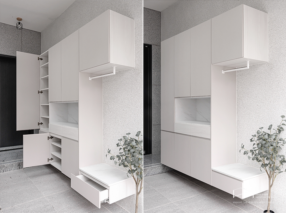 潔淨的櫃體立面,讓入口更顯俐落與秩序
