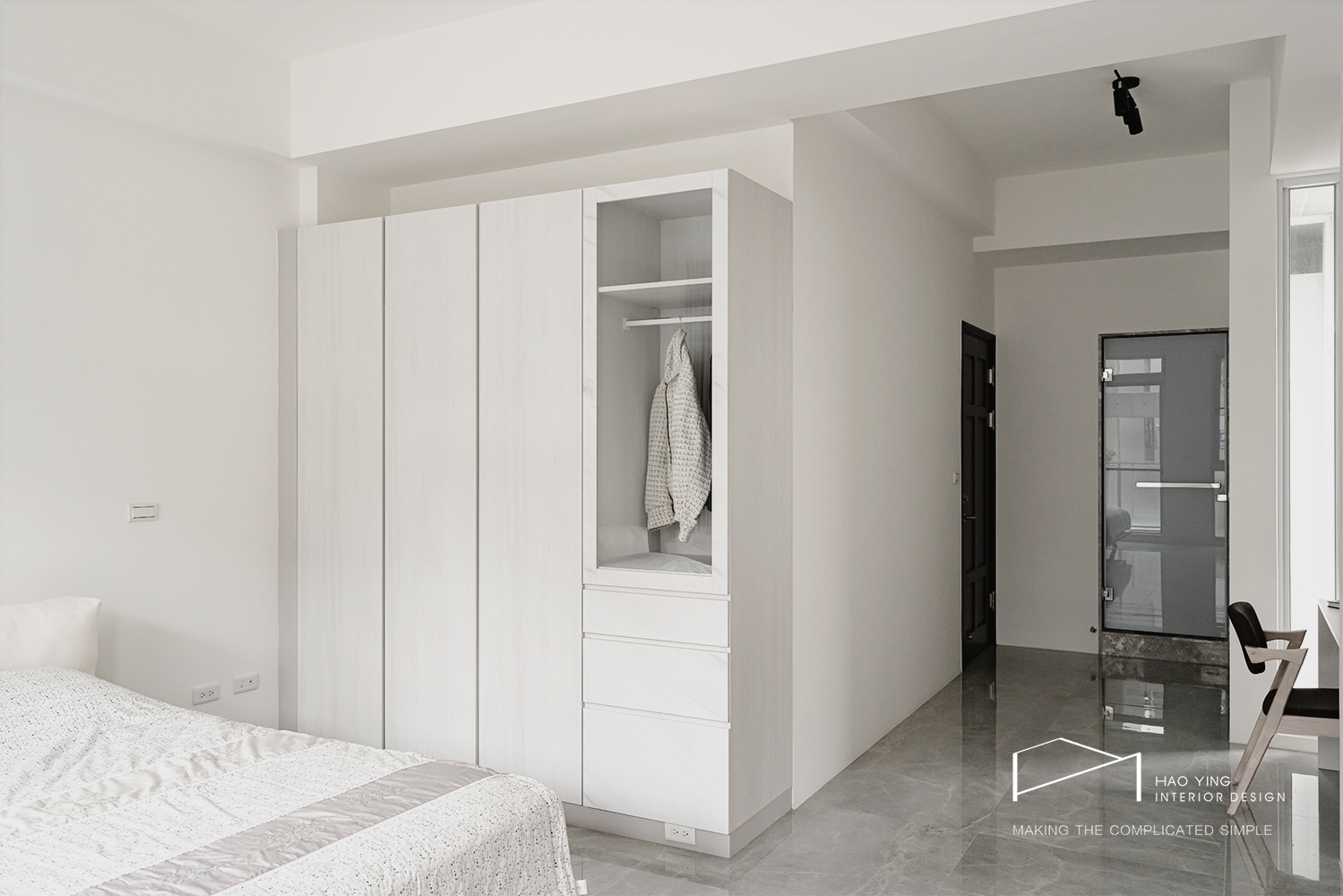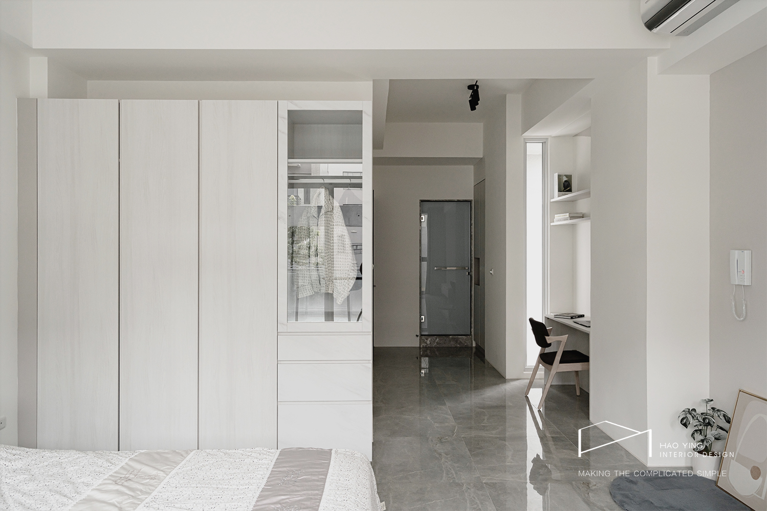 系統衣櫃與玻璃交錯,讓實用與優雅在空間中並行