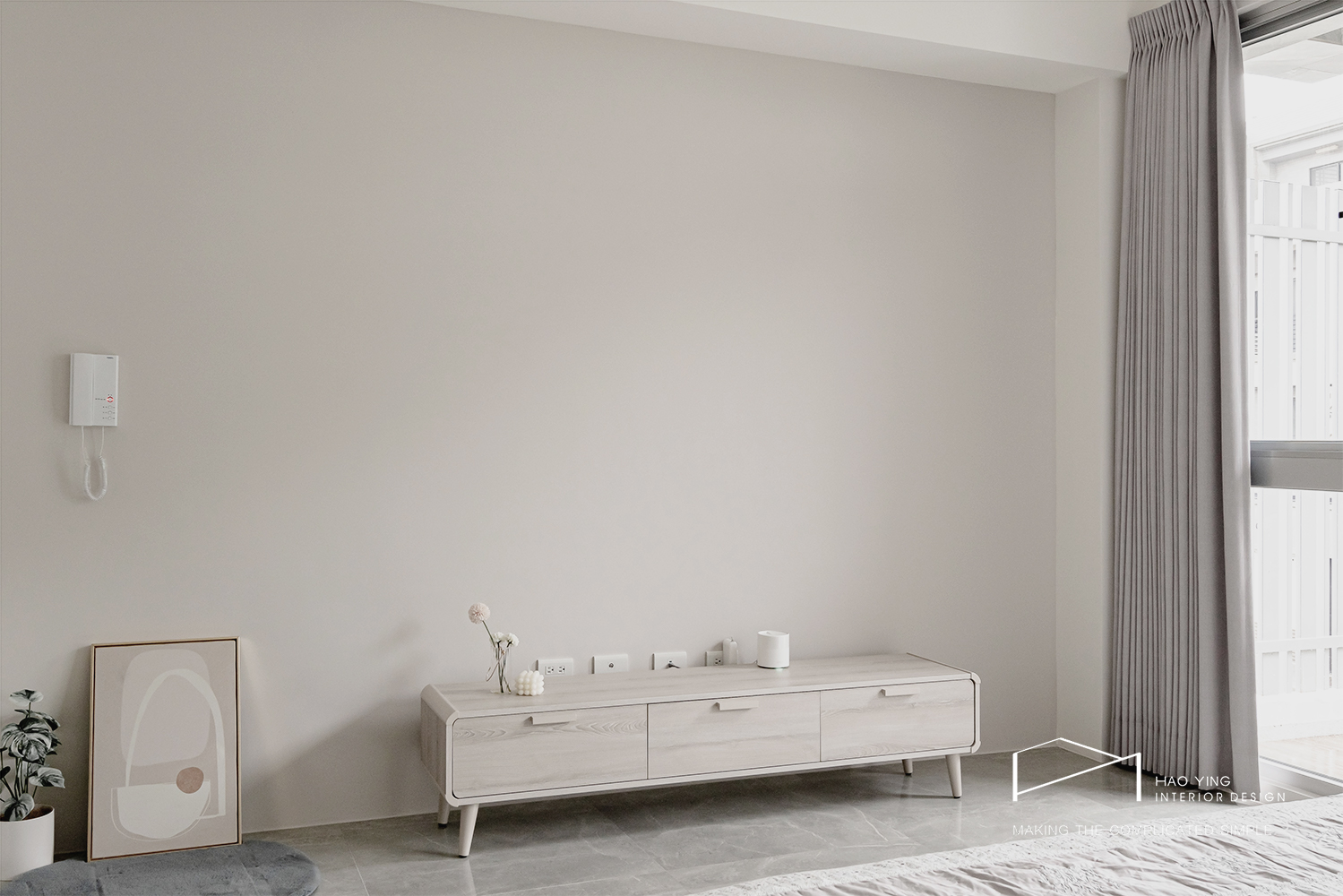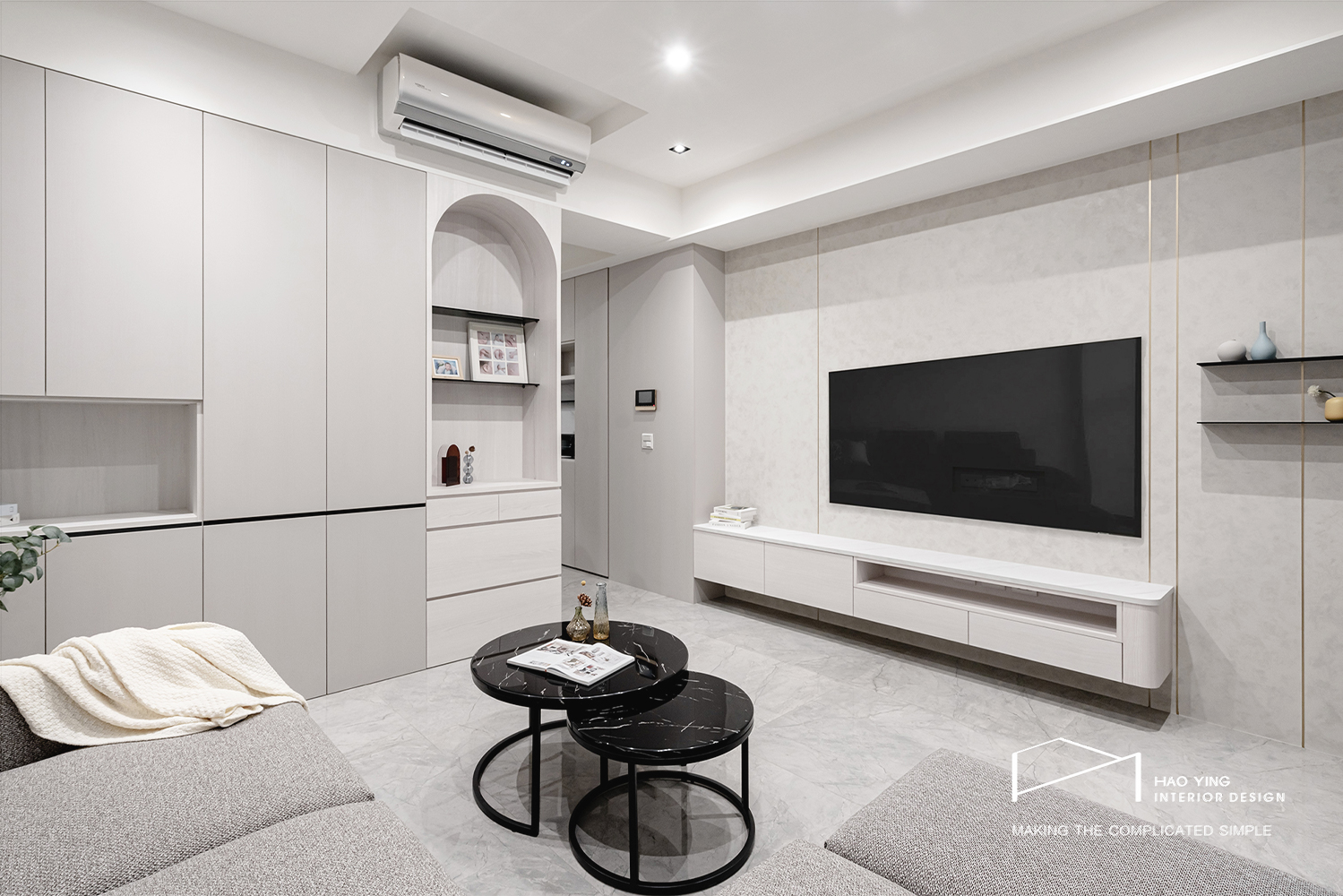 電視牆以留白襯托視覺,搭配俐落櫃體顯得輕盈純粹