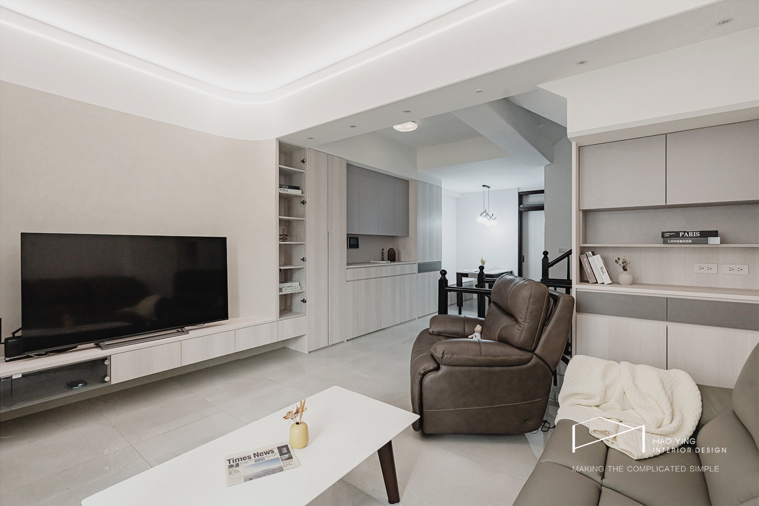 隱藏燈條柔化天花線條,為空間注入溫和的層次光感