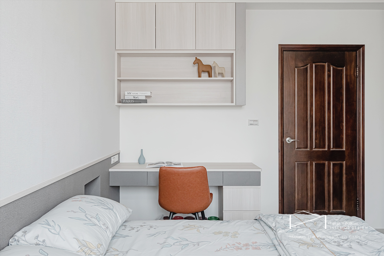 書桌與吊櫃一體設計,閱讀、書寫與梳化皆能優雅切換