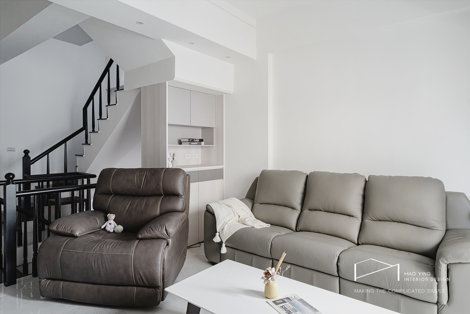 沙發與收納相互平衡,描繪出柔和卻俐落的日常節奏