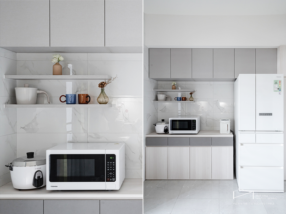 廚房映入白色廚具與家電,明亮潔淨讓料理更有儀式感