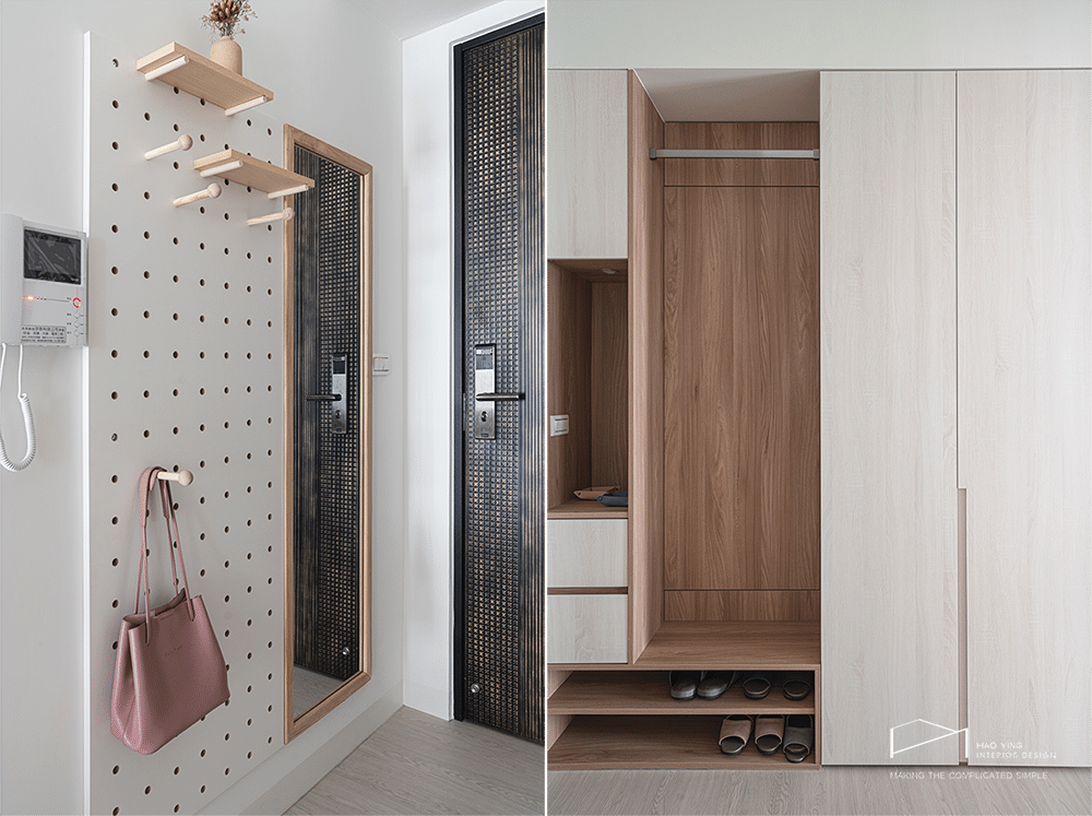 木質櫃體收攏雜物,入門氛圍更為輕盈