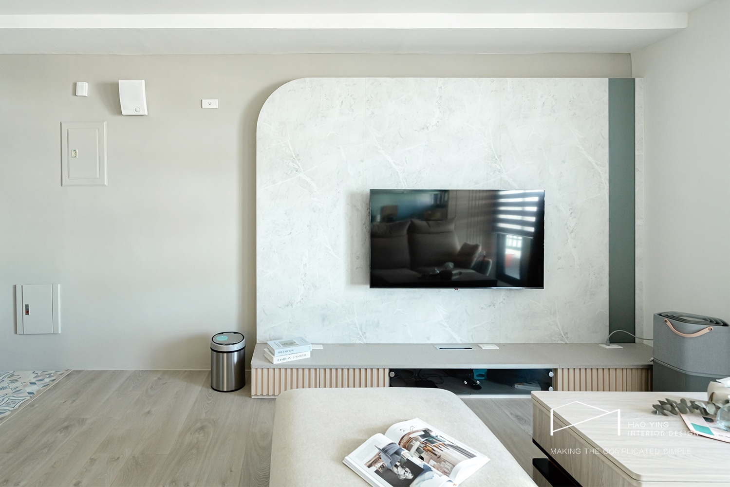 圓弧大理石電視牆,柔和而具質感