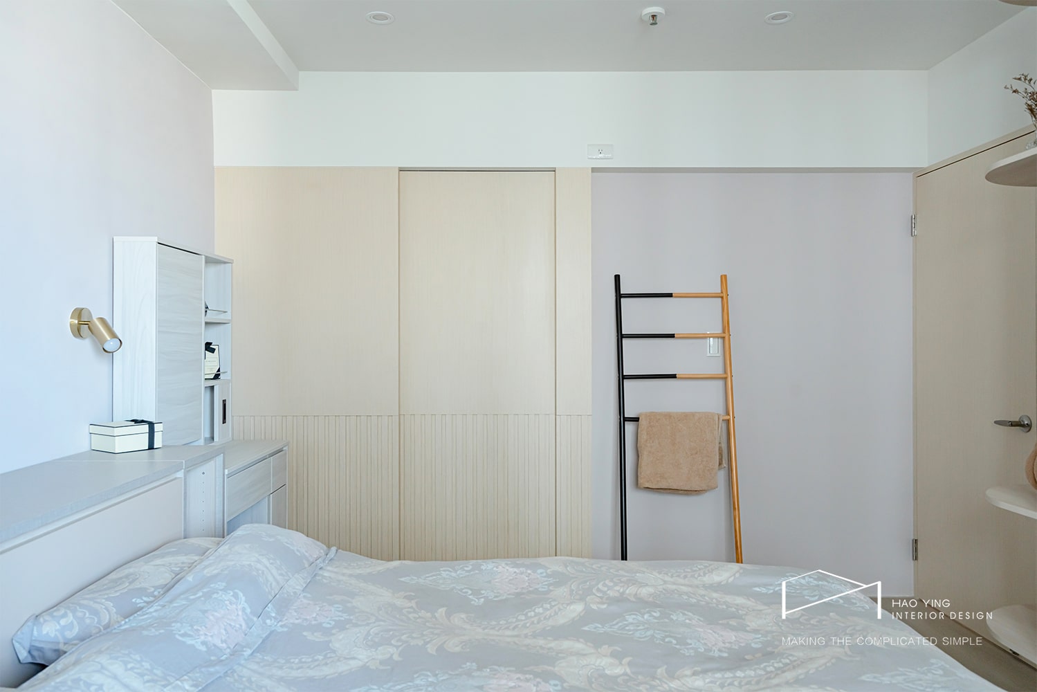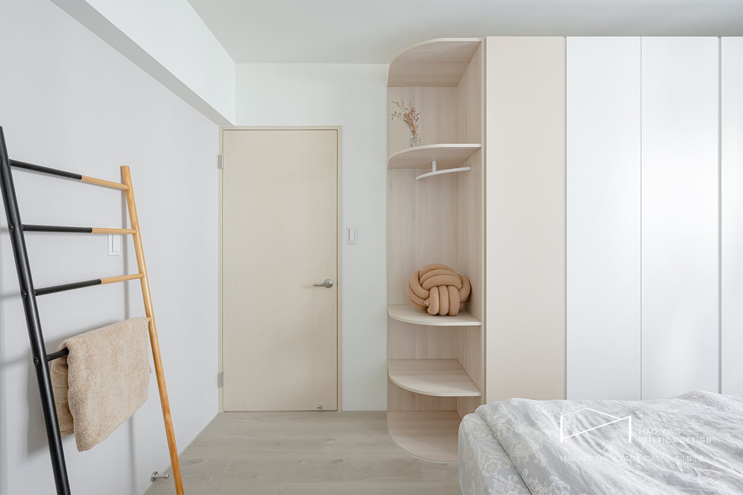 柔和木質與淺灰牆面交織出靜謐氛圍