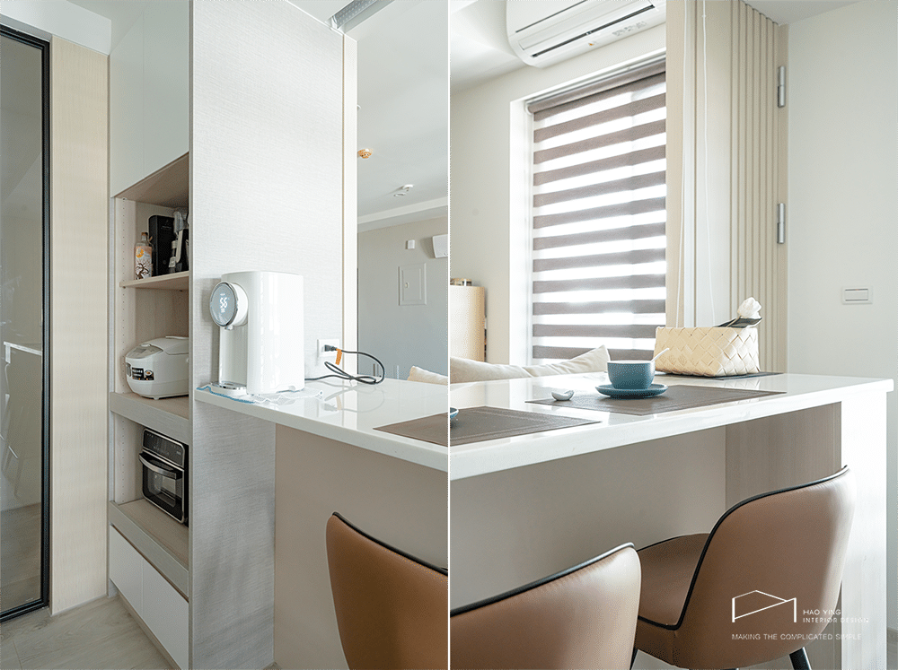 淺色木質與白色櫥櫃,映襯明亮輕盈氛圍。