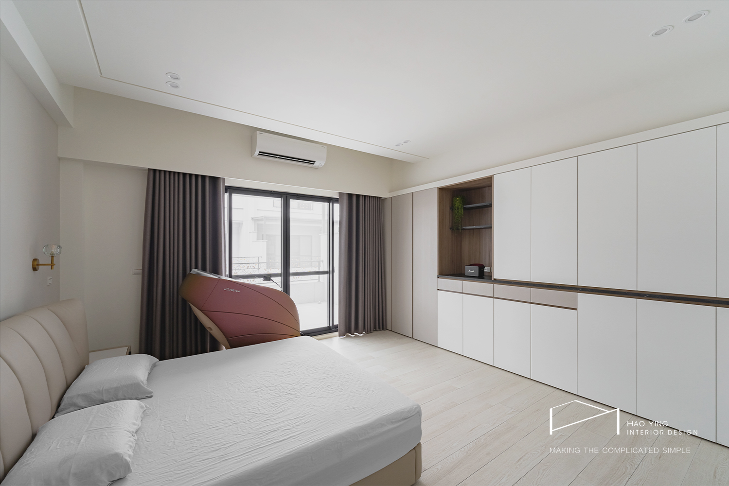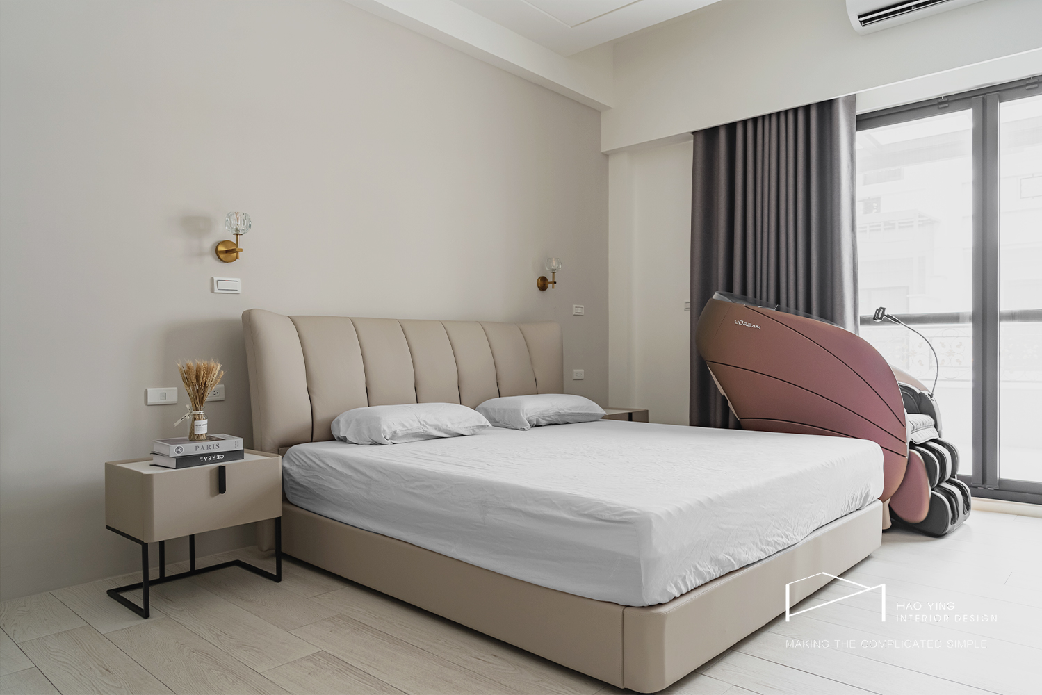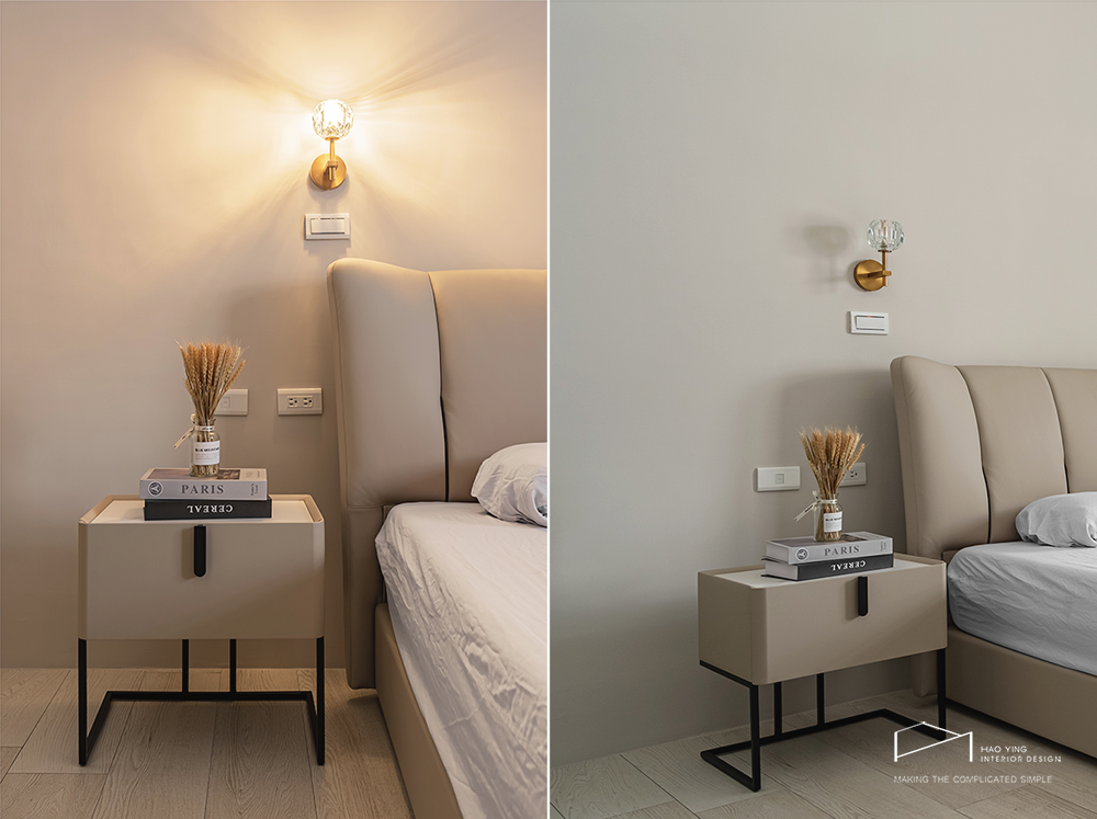 柔白牆面搭配淺質調,營造安定而純粹的氛圍