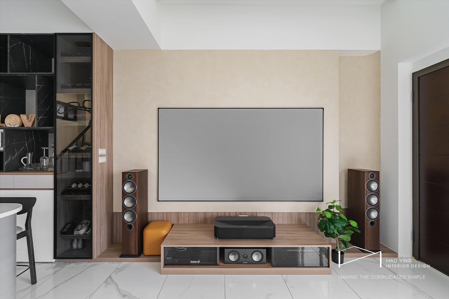 電視牆留白搭配木質元素,展現純粹又沉著的氛圍